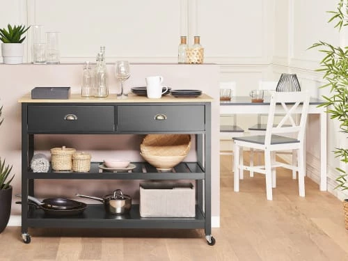Baita Îlots Et Dessertes Desserte De Cuisine Effet Chêne Et Cannage Rotin Avec Roulettes