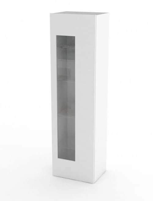 VITRINE AVEC PORTE SIMPLE: Vitrine au design moderne, structurée avec une seule porte avec détail entre les étagères internes, entièrement en blanc brillant. STRUCTURE ET UTILISATION: Buffet avec une porte développée en hauteur, à l’intérieur il est structuré avec quatre grandes étagères en verre trempé – La porte simple s’ouvre vers la droite – Grâce au détail du verre sur toute la hauteur de la porte, le buffet est très léger et est parfait pour afficher vos bibelots préférés – Entièrement blanc brillant. PRATIQUE ET INNOVANT: Son design simple et élégant rend cette bibliothèque parfaite pour être placée dans un environnement moderne et lumineux, dans n’importe quelle pièce de votre appartement, du hall à la chambre: c’est le produit idéal pour ceux qui recherchent un article fonctionnel et peu encombrant pour leur maison – La couleur blanche brillante est très moderne, innovante et en même temps s’adapte facilement à tout type d’environnement. 100% MADE IN ITALY: La production 100% italienne garantit fiabilité, résistance, confort et durabilité dans le temps l’attention aux processus de production, le choix de matières premières de qualité et le souci du détail font de ce produit de fabrication noble. CARACTÉRISTIQUES TECHNIQUES: Entièrement en stratifié et verre, il résiste aux chocs et aux rayures, et est durable dans le temps – Nettoyage rapide et facile grâce au matériau qui le compose – Fourni démonté avec kit et livret d’instructions de montage – Soin et attention particuliers à ’emballage, résistant et adapté au transport – Dimensions en cm: 45x34h162.