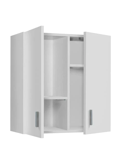 Armoire suspendue polyvalente avec deux portes et deux étagères extractibles entièrement en blanc avec poignées rectangulaires en aluminium gris. Cette armoire peut être utilisée dans différentes pièces de la maison, elle est spacieuse et les étagères vous permettent de ranger de manière ordonnée les objets dont vous souhaitez la remplir. Les étagères amovibles vous permettent de placer des objets encore plus gros à l’intérieur. Equipé de supports métalliques pour la fixation au mur, il ne comprend pas de vis et chevilles qui doivent être placées de manière appropriée au type de mur. Fabriqué entièrement en stratifié, il résiste aux chocs et aux rayures et est durable dans le temps. Dimensions en cm : 59 x 60 x 26,5.