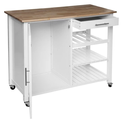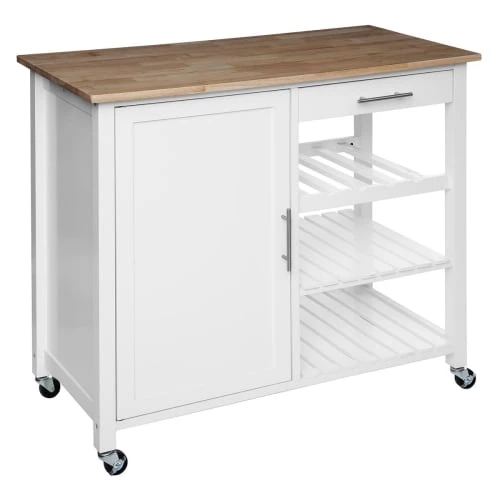 Mobili Rebecca Îlots Et Dessertes Chariot Cuisine Avec Roues 40x13x85 Cm En Plastique Blanc