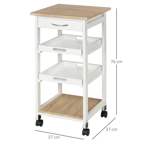– Desserte multi-rangements : 2 plateaux amovibles, tiroir, étagère + plateau supérieur/plan de travail
