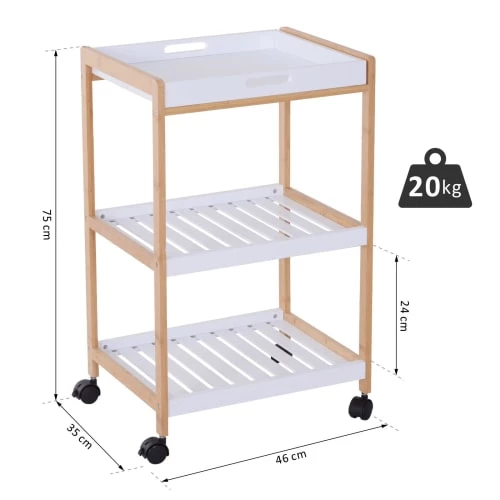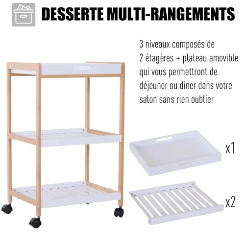 – Desserte multi-rangements : 2 étagères + plateau amovible