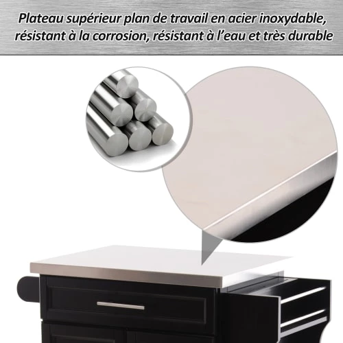 – Plateau supérieur plan de travail en acier inoxydable, résistant à la corrosion et solide