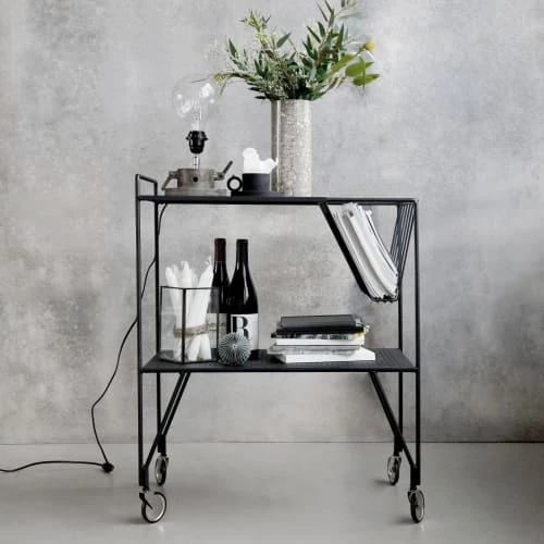 Maisons Du Monde Îlots Et Dessertes Desserte 1 Tiroir En Bois De Sapin Et Métal Noir à Roulettes