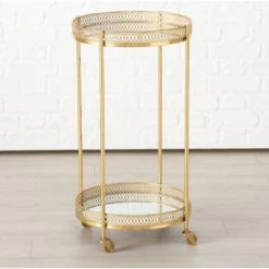 Wadiga Îlots Et Dessertes Table Roulante Ronde Décorative En Métal Doré