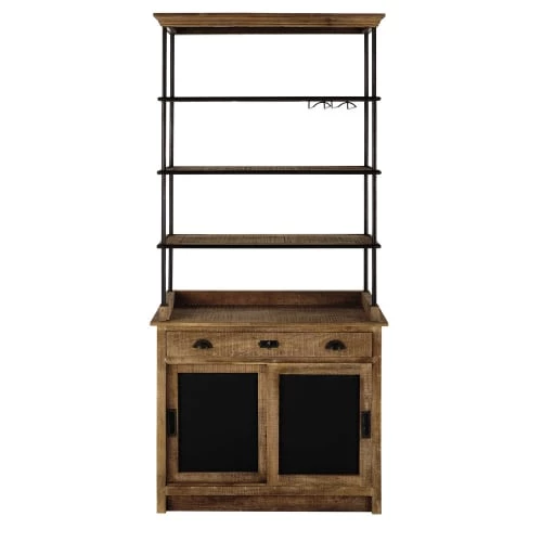 En bois de manguier massif et métal, cette desserte vous offre de multiples rangements. Dans la partie haute, ce meuble indus est équipé de 3 étagères et pour la partie basse, vous disposez d’un grand tiroir et d’un compartiment avec deux portes coulissantes. Le détail déco : la peinture ardoise qui permet d’écrire sur les portes. Vous aimerez : l’alliance du métal et du bois de manguier massif qui revisite le style industriel.
