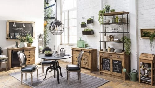 Focus sur le style indus ! Réalisée en manguier massif, cette collection de meubles authentiques donnera à votre intérieur tout le cachet qu’il mérite. Vous aimez le mobilier robuste, esthétique et fonctionnel ? La gamme GERMAIN devrait vous plaire : imprimés vintage, rails métalliques, porte-étiquettes… On craque pour le contraste entre bois brut et métal noir, un mariage ultra-tendance pour une atmosphère des plus chaleureuses.