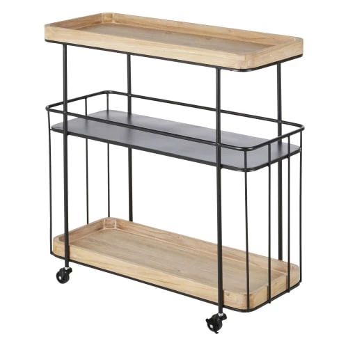 Maisons Du Monde Îlots Et Dessertes Desserte à Roulettes En Métal Noir Et Paulownia
