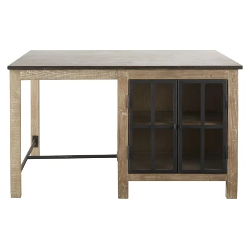 Pour créer une ambiance chaleureuse et conviviale dans votre espace cuisine, découvrez l’Îlot central cuisine 2 portes vitrées en pin recyclé grisé GRETA. Réalisé en pin recyclé à la finition grisée, il offre un généreux plan de travail en pierre bleue anthracite pour concocter toutes vos créations culinaires. Composé d’un espace convivial que l’on peut accompagner de chaises hautes, cet îlot central de cuisine cache également des rangements avec 2 portes vitrées d’un côté et 2 portes pleines, de l’autre. De quoi accueillir votre linge de maison et votre vaisselle en un clin d’œil. On a déjà envie de s’y attabler !