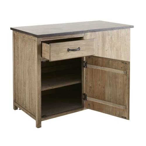 Structure, côtés et tiroirs : pin recyclé finition grisée