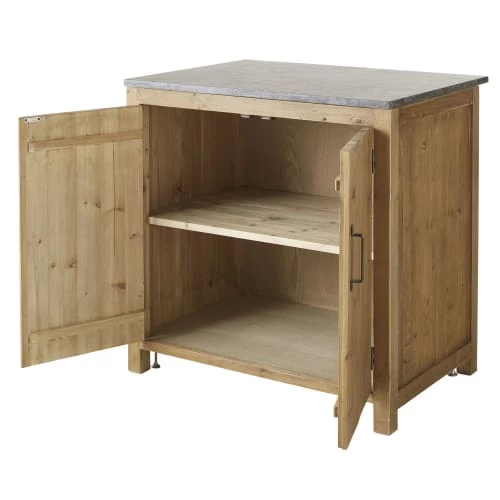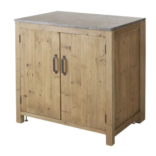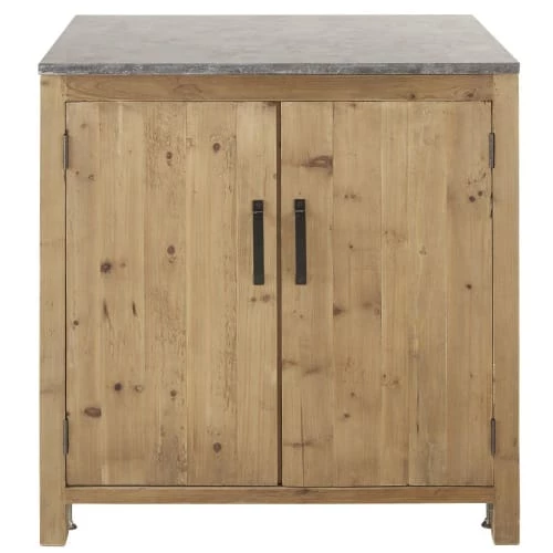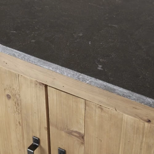 Besoin d’éléments de rangement dans votre atelier gourmand ? Misez sur le meuble bas de cuisine 2 portes en pin recyclé effet vieilli AUBAGNE au charme authentique. Structure en pin recyclé, poignée en métal à la finition vieillie, plateau en pierre bleue anthracite… Il joue avec les matériaux bruts pour un rendu plein de charme. Derrière ses 2 portes se cache une étagère qui vous permettra d’accueillir vos provisions ou vaisselle. Avec ses fileurs sur les côtés et ses pieds réglables, ce meuble de cuisine présente de nombreux atouts qui vous donneront envie de réaliser vos recettes préférées.