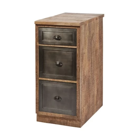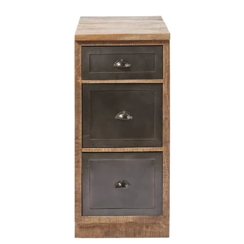 La cuisine a elle aussi le droit à une déco qui en jette ! Avec le meuble bas 3 tiroirs MELCHIOR le style indus n’a pas dit son dernier mot et s’invite fièrement dans votre coin gourmand. On craque pour sa structure et son plateau en manguier massif qui se combinent parfaitement aux 3 tiroirs en métal gris. Pratique, vous pourrez y ranger vos accessoires de cuisine, ustensiles et couverts et profiter de son plan de travail pour concocter de délicieuses recettes. Composez votre propre espace en choisissant d’autres meubles de cuisine de la gamme MELCHIOR !