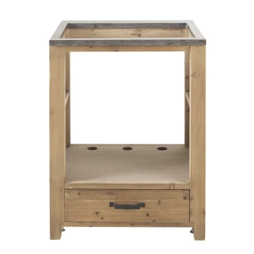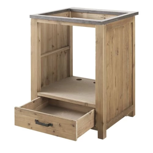 Le charme des maisons de campagne débarque dans votre atelier gourmand avec le meuble bas de cuisine pour four 1 tiroir en pin recyclé effet vieilli AUBAGNE. Doté d’un emplacement pour la pose d’une plaque de cuisson, d’une niche centrale pour votre four et d’un tiroir dans la partie inférieure, il a tous les atouts pour une cuisine bien équipée et conviviale. C’est sans compter sur des pieds réglables et des fileurs placés à l’arrière de chaque côté qui viennent compléter ce meuble de cuisine. Fonctionnel et stylé, on l’a déjà adopté !
