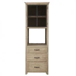 Alliez authenticité et fonctionnalité en complétant votre ameublement cuisine avec le meuble de cuisine colonne four 1 porte vitrée 3 tiroirs en pin recyclé GRETA. Conçu avec du pin recyclé et du métal noir, il sublimera votre atelier gourmand en un clin d’œil. La porte vitrée exposera joliment vos verres, les 3 tiroirs sur rails invisibles accueilleront couverts et ustensiles, tandis que votre four aura enfin un endroit rien qu’à lui. Pratiques, les corniches démontables sur les côtés vous permettront une finition parfaite. Un meuble de cuisine qui a tout compris !