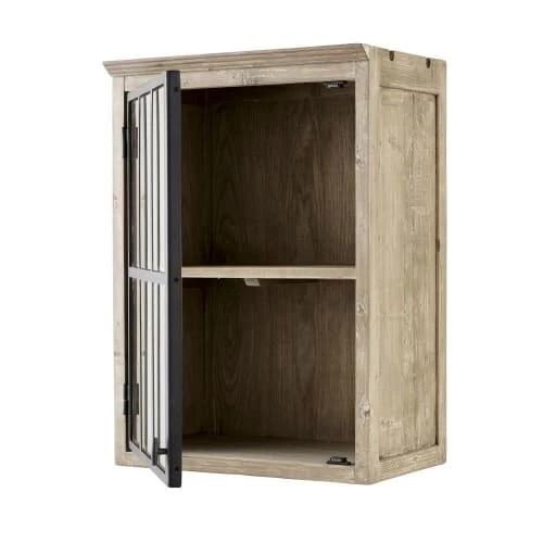 Envie d’une cuisine tendance et au côté nature ? Le meuble de cuisine haut 1 porte vitrée poignée à droite GRETA est fait pour vous ! Alliant à merveille pin recyclé, métal et verre, il attirera tous les regards dans votre atelier gourmand. Idéal pour ranger vos verres, tasses ou assiettes, ce meuble de cuisine apportera une note authentique avec sa porte vitrée façon verrière. Le saviez-vous ? Il est doté de corniches latérales amovibles, très pratiques. Combinez-le au meuble de cuisine haut 1 porte vitrée ouverture gauche GRETA pour un ensemble harmonieux.
