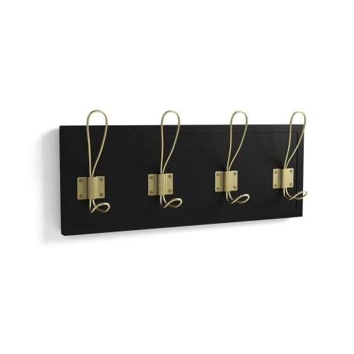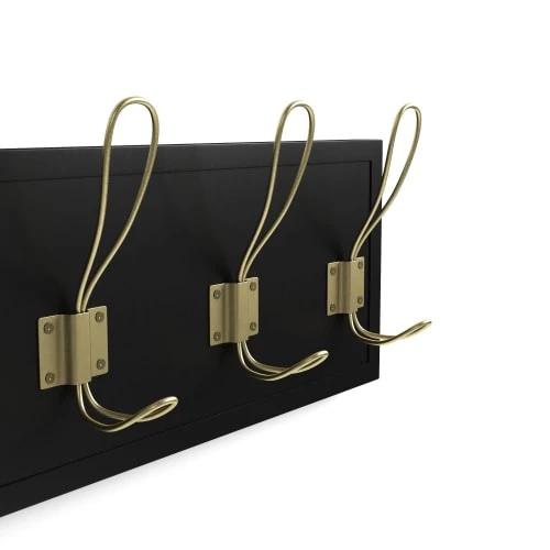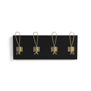 La patère noire et métal or effet laiton Ariane reste sobre, autant par sa couleur que par sa forme. Ainsi, vous pouvez l’associer de nombreuses teintes de déco : blanc, jaune, rouge, bleu, etc., tant que vous rappelez la touche de laiton au niveau des poignées de porte ou de meuble et de quelques objets décoratifs ou utilitaires, comme un miroir, un porte-parapluie ou une console, par exemple.