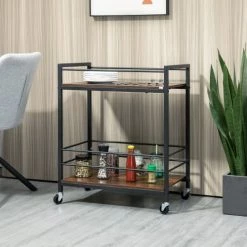 Homcom Ălots Et Dessertes Desserte De Cuisine Ă Roulettes 2 Plateaux MĂ©tal Aspect Bois