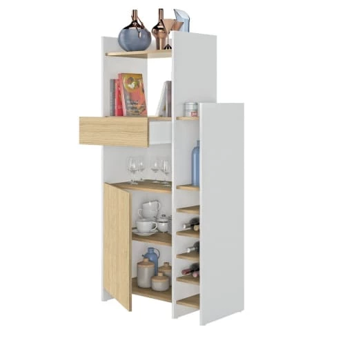 La desserte micro-ondes KITCHY allie fonctionnalité et simplicité avec ses nombreux rangements et ses casiers à bouteilles.