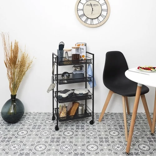 Mobili Rebecca Îlots Et Dessertes Chariot Cuisine Avec Roues 40x13x85 Cm En Plastique Blanc