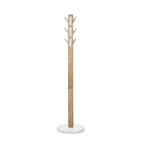 Umbra Portemanteaux Et Patères Portemanteau Sur Pied En Bois, 9 Crochets Métal, Blanc