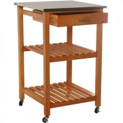 Wadiga Îlots Et Dessertes Desserte De Cuisine Sur Roulettes En Bois Plateau Inox 1 Tiroir